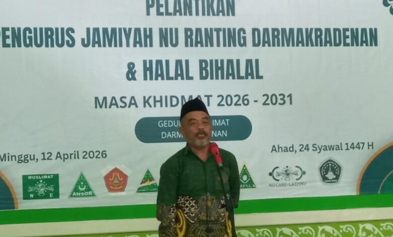 Ajibarang (banserbanyumas.com)- Ketua Tanfidziyah MWC NU Ajibarang, H. Slamet Ibnu Ansori, S.A.P menekankan pentingnya komitmen dan keikhlasan dalam berkhidmat di Nahdlatul Ulama. Hal tersebut disampaikan saat memberikan sambutan usai melantik Pengurus NU Ranting Darmakradenan masa khidmat 2026–2031.